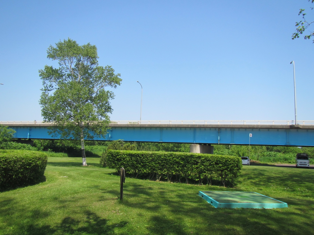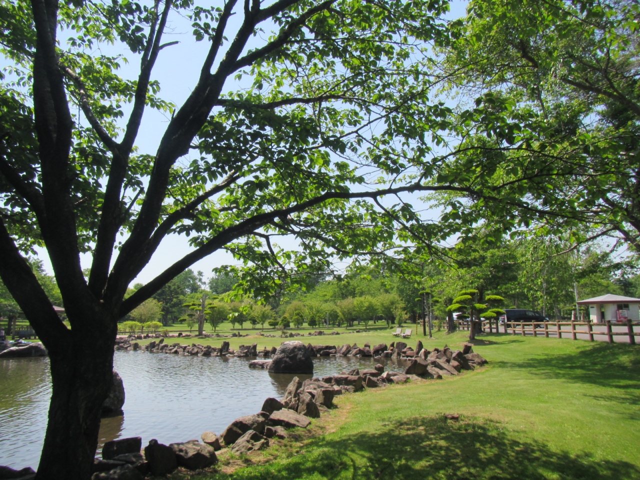 八雲の市街地がちょうど途切れる境目にあり、砂蘭部(さらんべ)川の手前まで公園となっていますが、その先は高速道路の道央道越えて、畑作・放牧地、森林へと続いていきます。