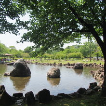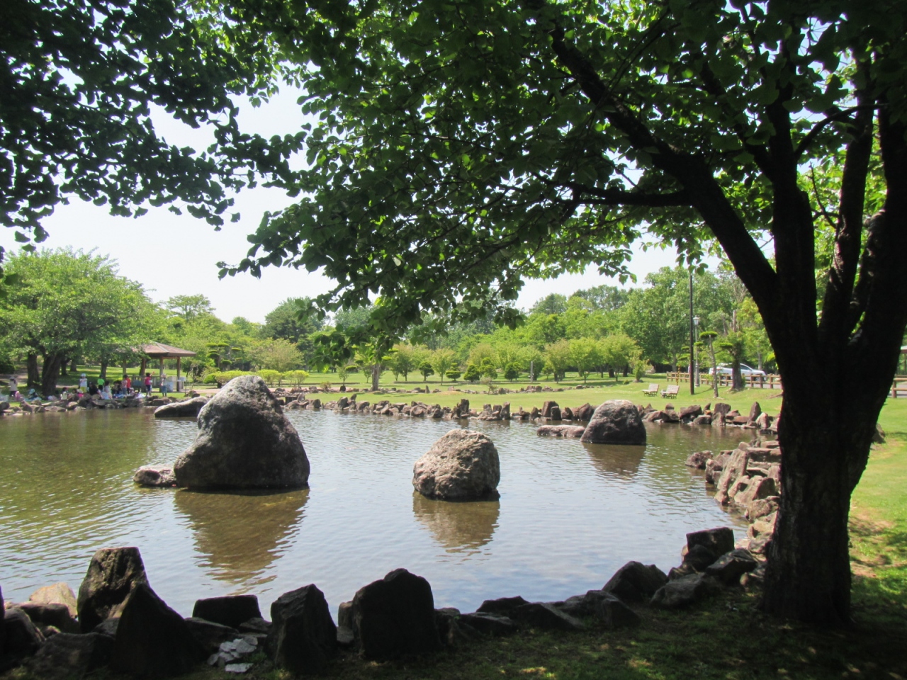 ほか、公園内は芝生に覆われていますが、庭園風に池があったり、ちょっとした遊具の広場があったりするものの、普段はあまり多くの人が訪れるような公園ではなさそうです。