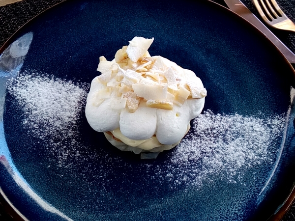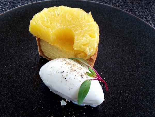 デザートが出てくる前におなかがいっぱいになってしまいましたが、パイナップルのタルト、アイスクリーム添えは量が控えめだったので食べきれました。