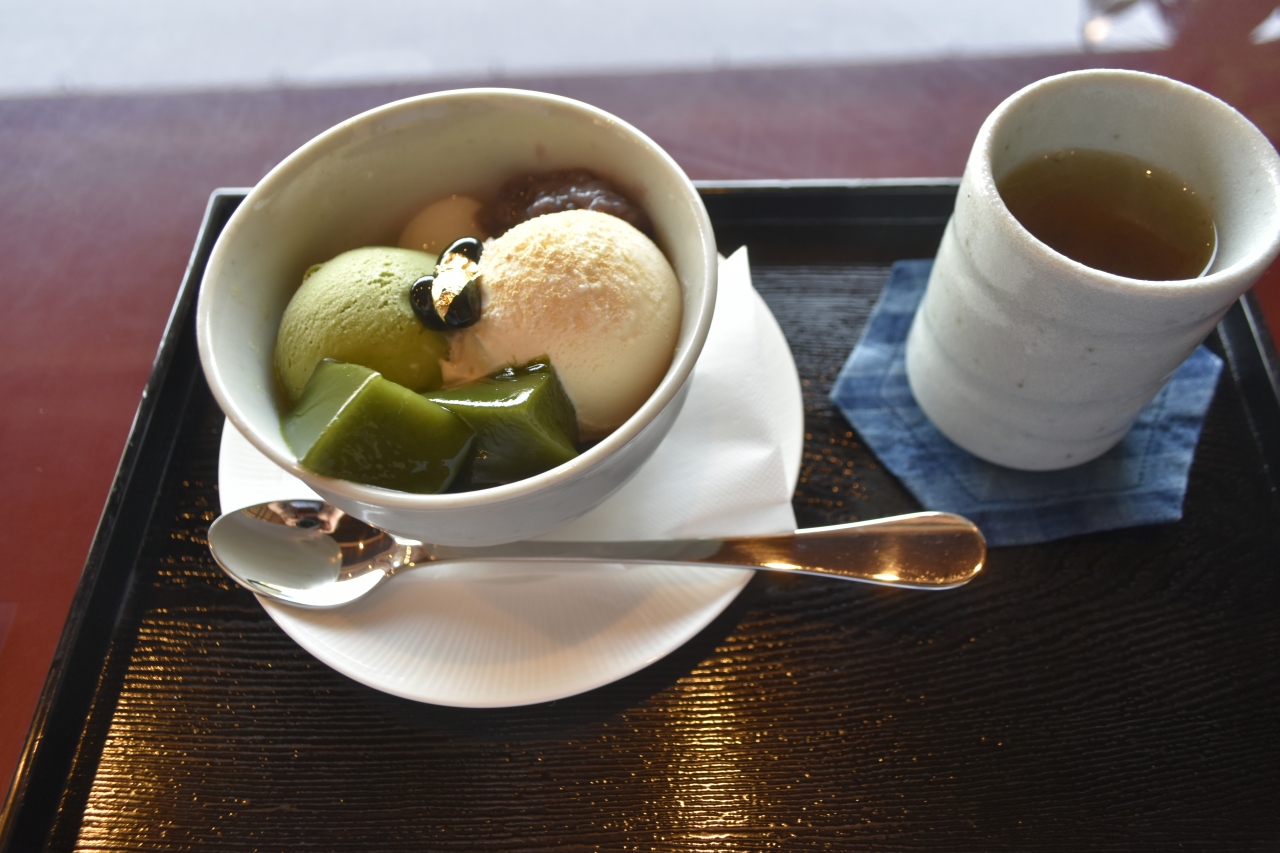五十鈴茶屋を訪れた日の伊勢は暑く、冷たいものが恋しくなる日でした。こういう日は、赤福よりも、赤福が経営する五十鈴茶屋のほうがと思い入りました。抹茶パフェを注文しましたが、個人的にはそこにひかれたスポンジケーキが余計ではないかと思いました。オーソドックスにミゾレ氷を頼んだほうがよかったかもしれません。あるいは、赤福本店では出していないものの、支店では食べられる赤福氷のほうが単価も安くよかったかなと思ったしだいです。個人的には、赤福本店か、赤福氷が食べられる支店をお勧めします。