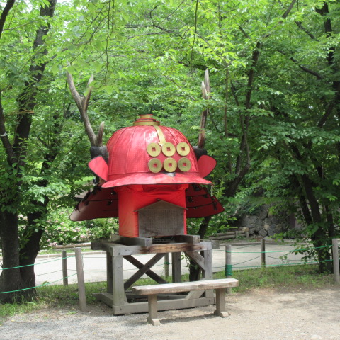 街中にあるので、市民の憩いの場にもなっているようでした。有料で上田城櫓に上がって、羽織りと火縄銃を持って写真撮影できました。