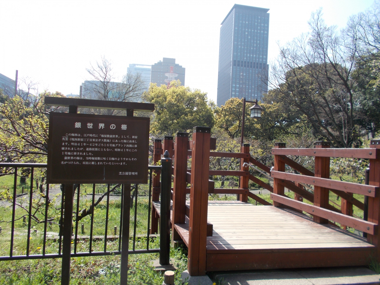 この「銀世界の梅」は芝東照宮の南に位置しています。梅園として整備されています。この梅林は明治の41年ごろに新宿にあった「銀世界」というものを移植して整備されました。梅の木が見やすいように一段高くした場所もあります。梅まつりが行われます。その時は多くの人が楽しんでいます。