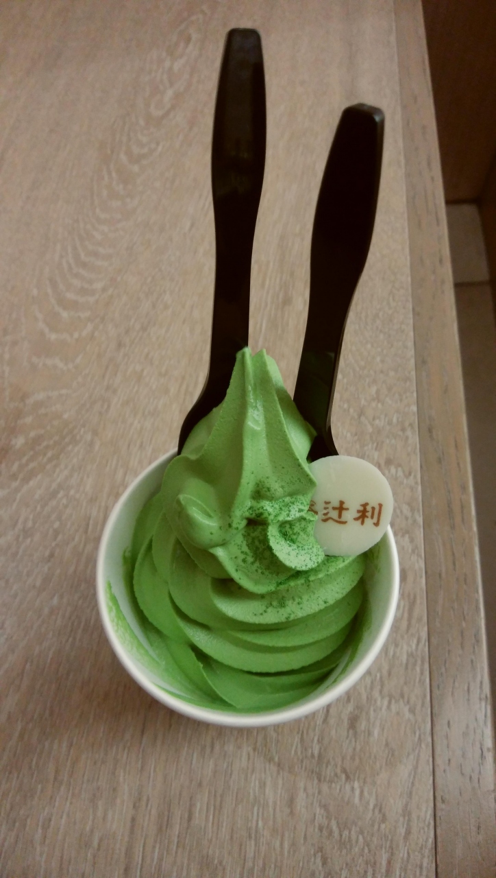 平日の夜に寄り道しました。以前は並んでいましたが、一年以上OPENからたったらならんでいません。でも一番安い抹茶のソフトクリームでも500円以上なので、なかなかリピートは難しいのかもしれません。抹茶の味がかなり濃厚なソフトクリーム。辻利というプレートチョコがついてきます。かなり濃い抹茶で、大人向け。