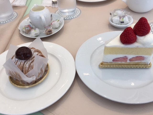 ケーキセット1250円税込みをいただきました。ケーキはケースに並んでいる数種類から選びました。銀座大通り沿いですがビルの上なので日曜の13時でしたら空いてました。ゆっくりと珈琲とケーキをいただくには良いです。ただお店のすぐとなり(ドアなし)が靴売り場になってます。