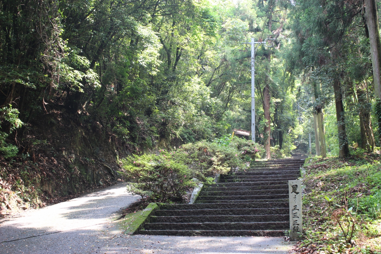 車を駐車場に停めてから、まず木々の中の330段の階段を登って行きます。