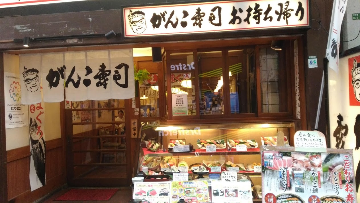 大阪各地にある「がんこ」チェーンに店です。店によって多少の違いがあり、がんこ寿司という店は名前のとおり寿司を重視しています。中に入るとカウンター席メインで、奥に座敷もあります。