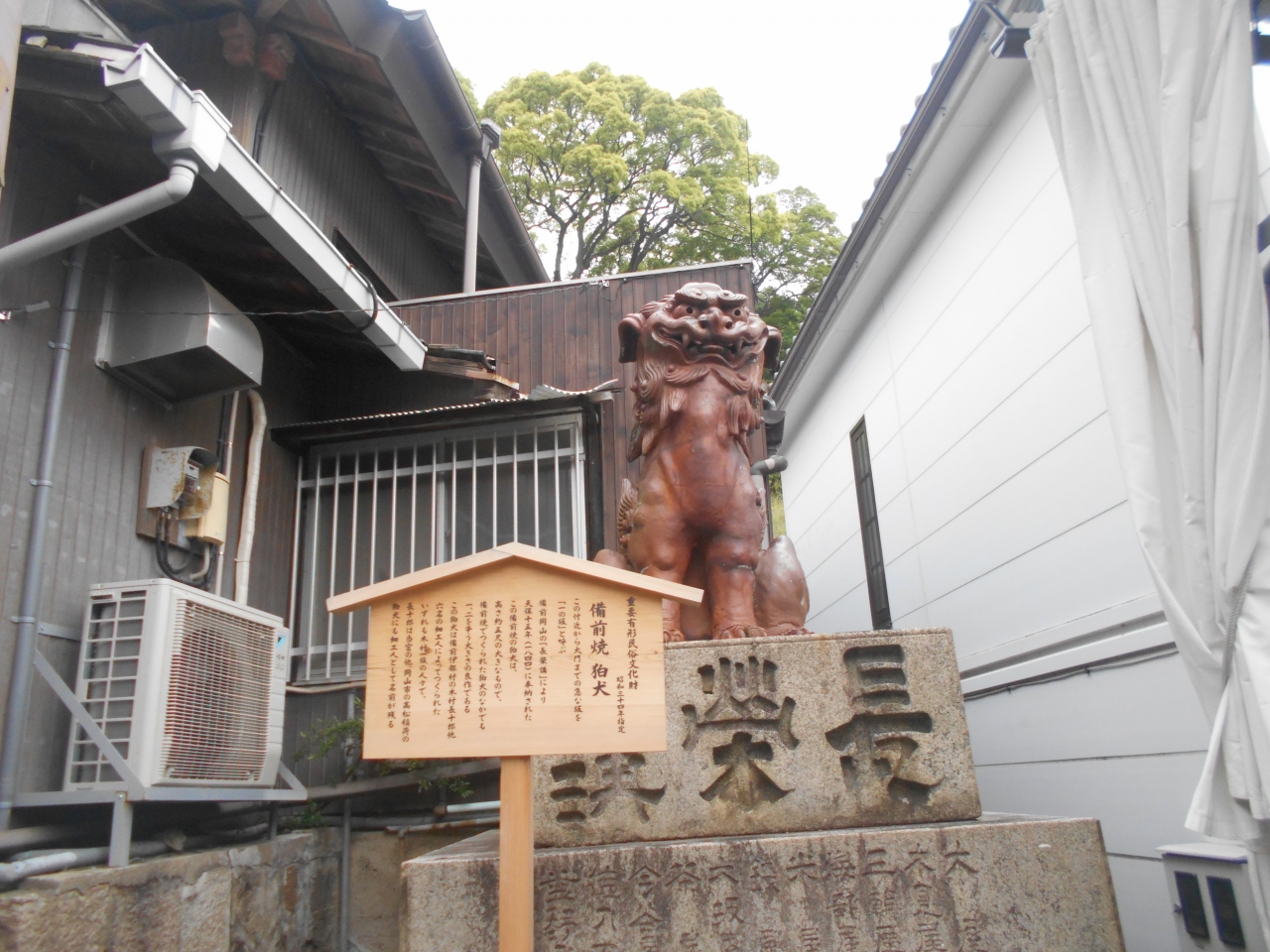 狛犬自体は備前焼とのことですが、茶色くテカテカした大きな狛犬で目を引きました。