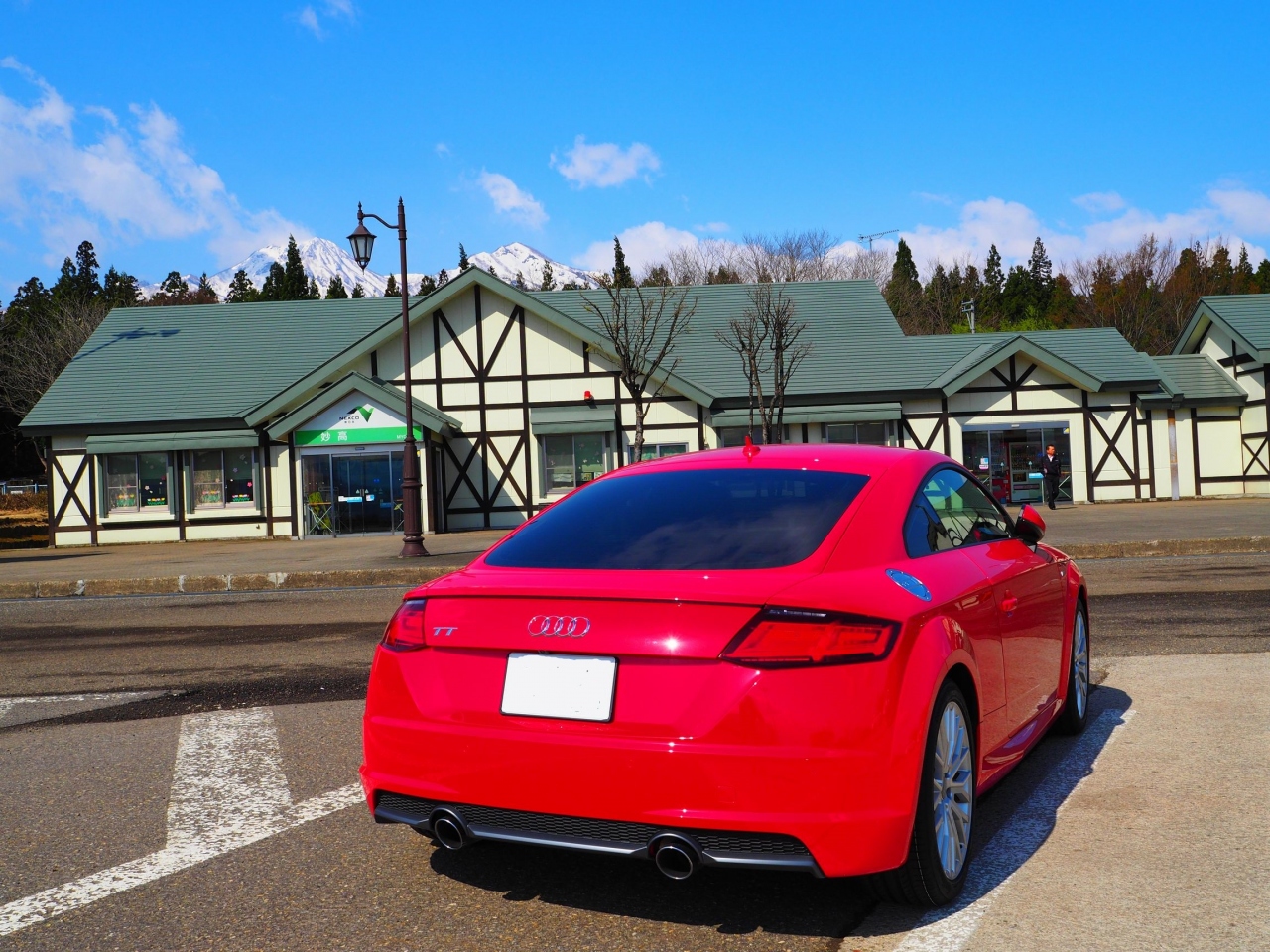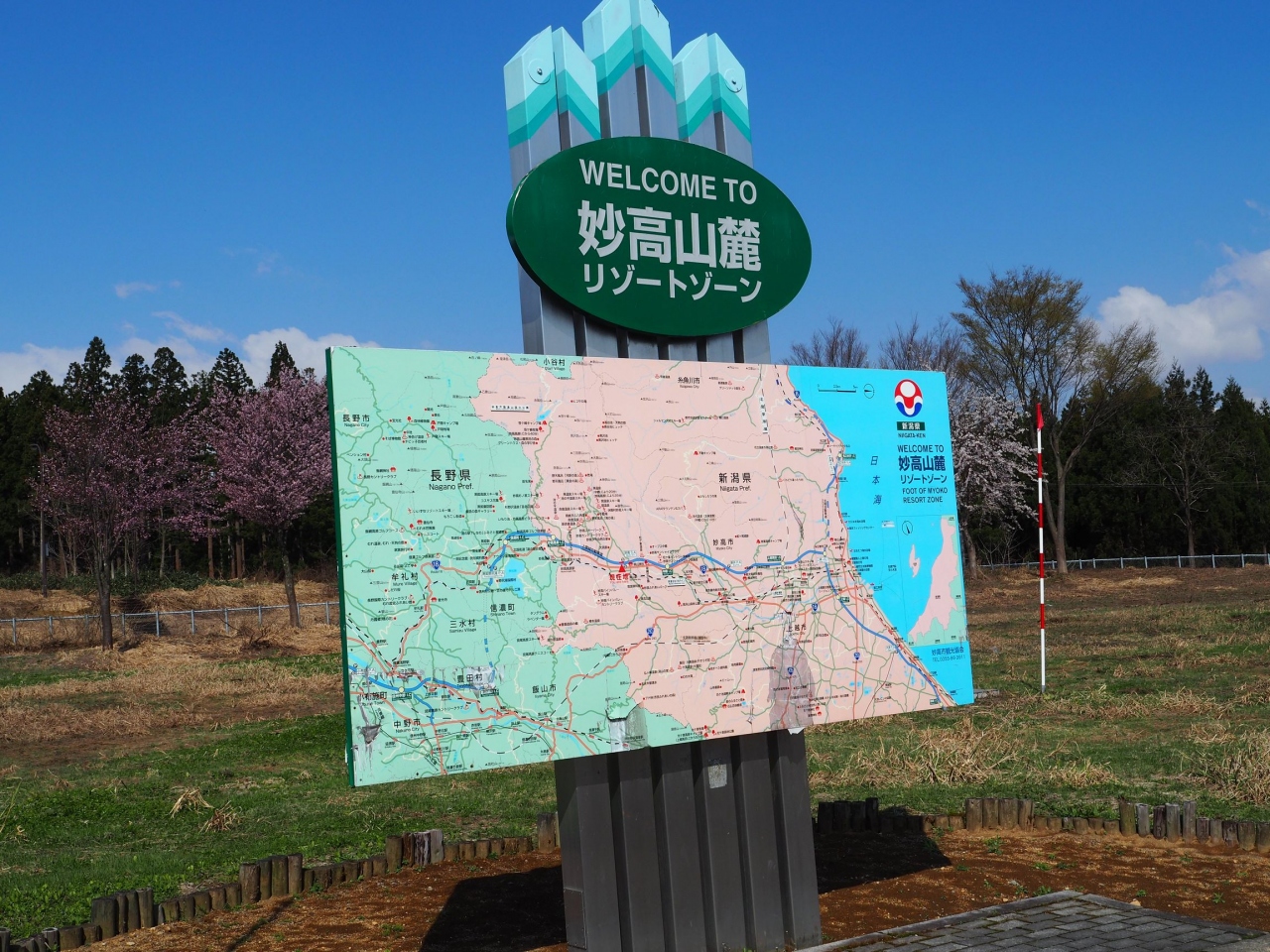雪深い妙高山が直ぐ近くに望めるSAで、春先は残雪と桜の花のコラボが楽しめます。