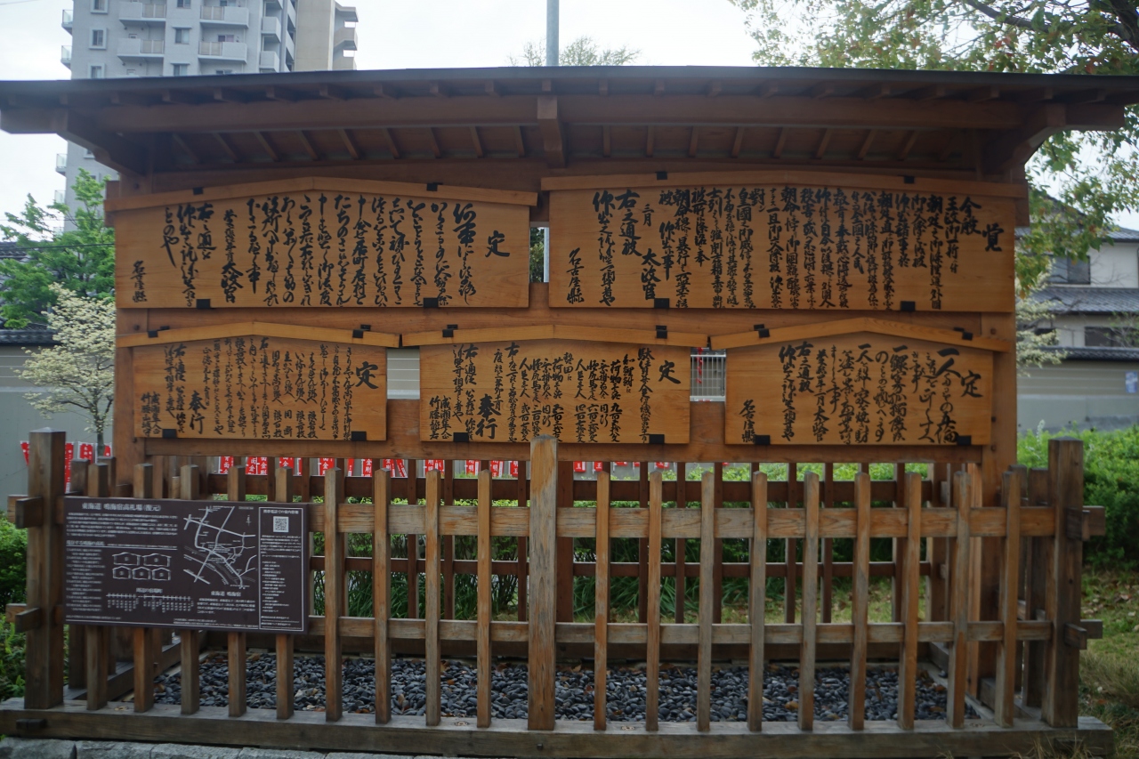 宿場町らしい遺構はほとんど残っていませんが、高札場が再現されていて、ちょっと雰囲気がある。住人や通行人に知らせる「定」と書いた板版がいくつも掛けてありました。