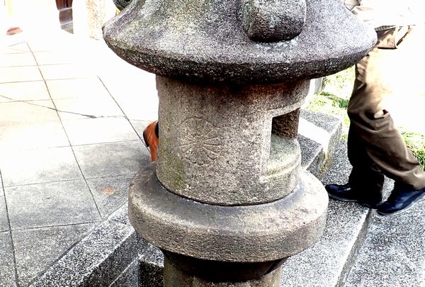 境内にある世継ぎ子育て地蔵尊の前の灯篭の裏には菊の御紋が彫られていました。明治天皇から他の方を通じて非公式に賜ったから裏を向いているんだそうです。