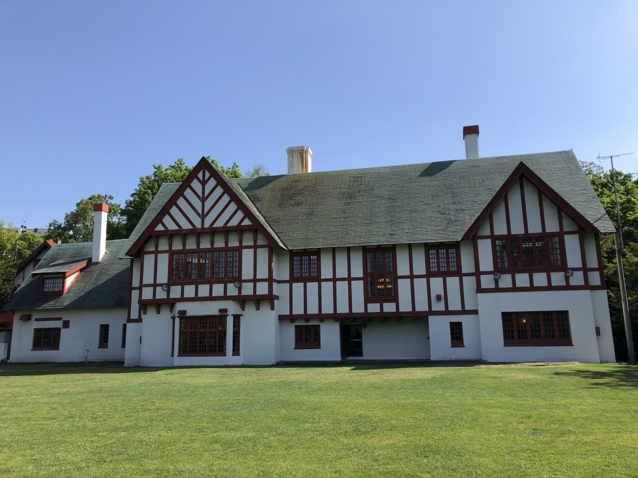くつろいでいました。知事公館の隣に知事公舎もありますが今は使われていないそうです。こちらは内部は見学できません。