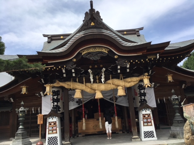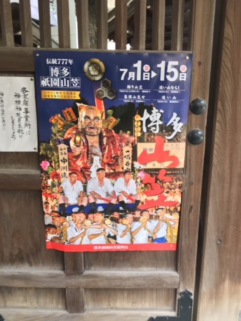 祇園山笠が奉納される神社です。中洲から博多川を渡って川端商店街をすぎてすぐのところにあります。キャナルシティからも近いです。ここでは一年中飾り山笠が展示されているということで行ってみました。思ったよりも立派な神社で、飾り山笠以外にもご神木の銀杏や力石など見るものがたくさんあります。