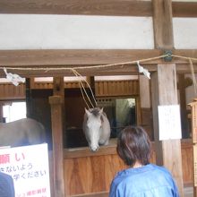 奥に位置する御厩には白くて綺麗なお馬さんがいました。