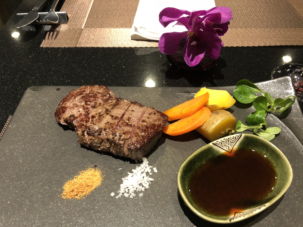 フランクフルトの深夜便で利用しました。Dining hは19:30openですが、15分とくらい前から利用客が並んでいます。限定品の国産牛ステーキをオーダーしましたが、焼き加減もよく、柔らかくて美味しかったです。ほとんどの客がステーキをオーダーしていました。