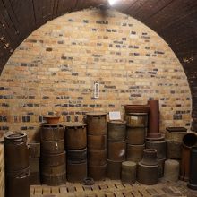 展示工房館は、登窯広場の隣り。中に両面焚倒焔式角窯という煉瓦の窯が保存されていて、トンネルみたいな形の窯の中に入って見れます。ここに商品をぎっしり詰め込んで焼いたんですが、その炎と熱に最後は任せて作品が出来上がる。深遠な世界を想像しながら拝見しました。