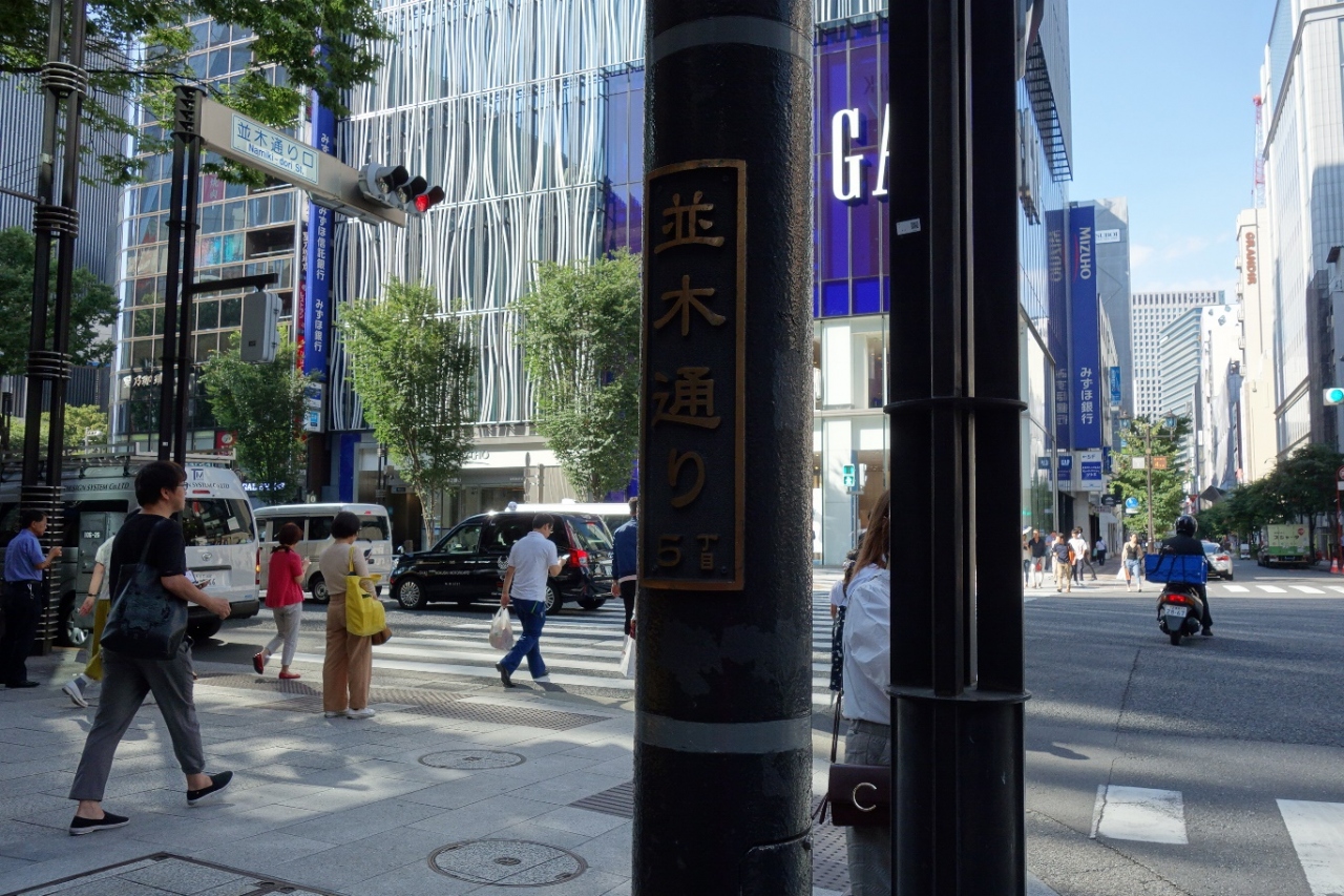お買い物客や外国からの観光客でいつも賑わう銀座エリアですが、こちら並木通りは落ち着いた雰囲気が有ってゆっくり歩けます。通り沿いにはブランドショップや老舗の飲食店などありますがオフィスも多い印象がありました。
