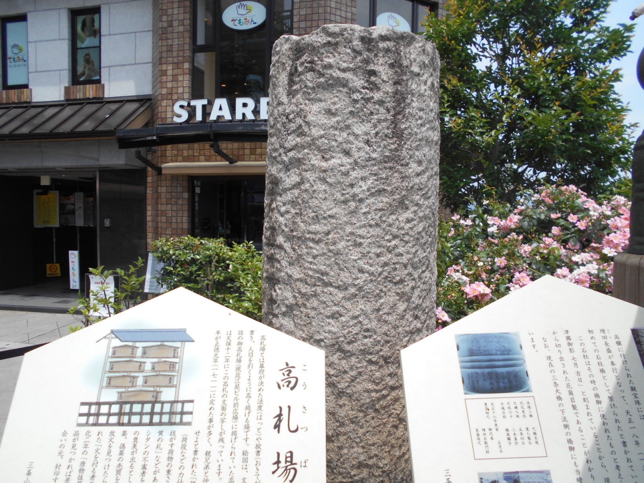 三条大橋の西詰、スターバックスの近くに説明板とともにあります。大きいのに意外と気が付く人は少なそうです。私も今まで何度か通っているのに知りませんでした。この石柱は江戸時代のものだそうです。神戸方面から切り出された花崗岩です。一部は今も現役とは、びっくりしました。