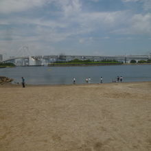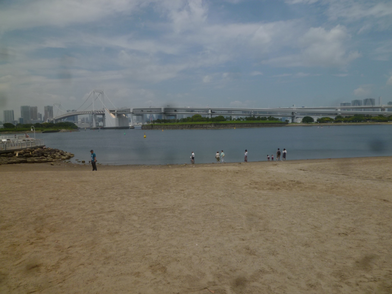 正面にレインボーブリッジ。夜景もさぞかしきれいなんだろうなあ。
