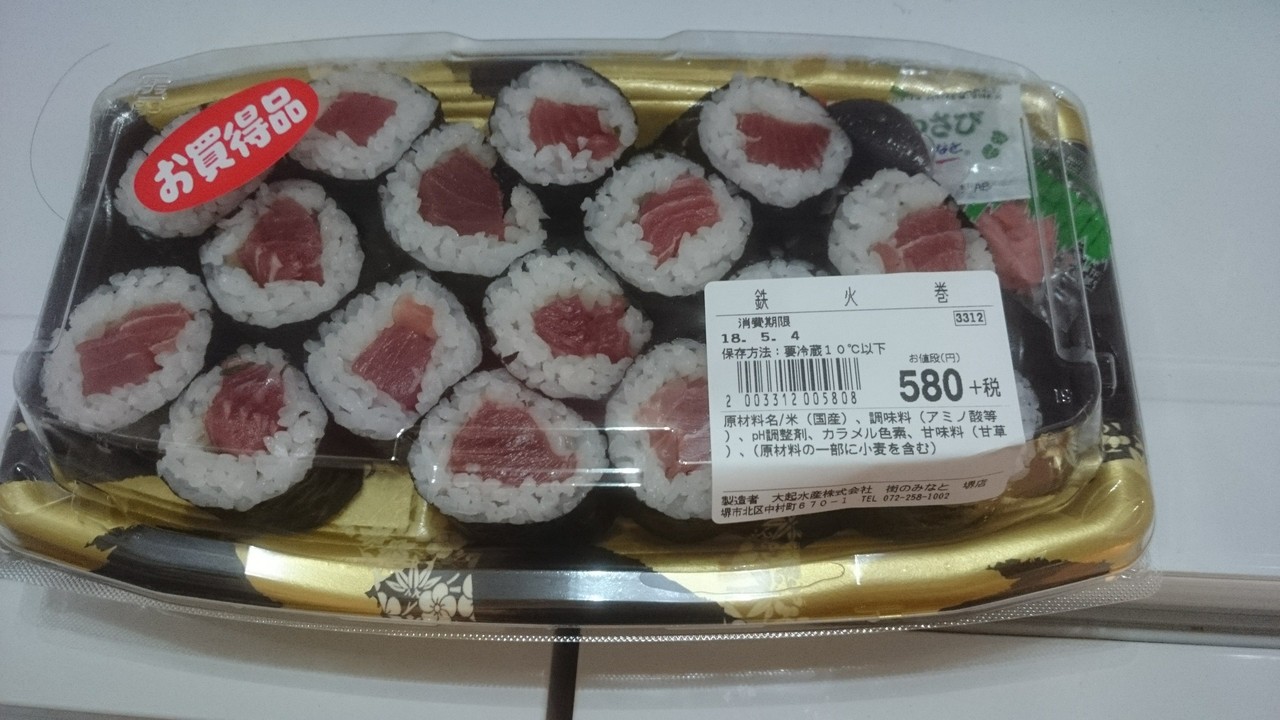 回転寿司屋さんのなかでは、ちょっとえぇとこのお寿司です。今回は持ち帰りで利用しました。上寿司盛り合わせ二人前と鉄火巻き、うな玉巻きを購入して、嫁ちゃんと子ども二人とシェアして頂きました。美味しかったですよ。また機会があったら利用したいと思います。