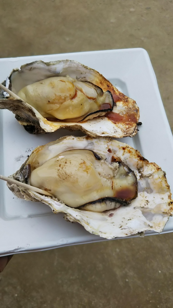 宮島の厳島神社側にあるお食事処です。その場で食べる焼きがきを提供しております。かきは肉厚でぷりぷりしておりますね。2個500円でした。醤油とレモン汁をかけたり、ポン酢で食べるとおいしいですね。汁も残さずいただきました。