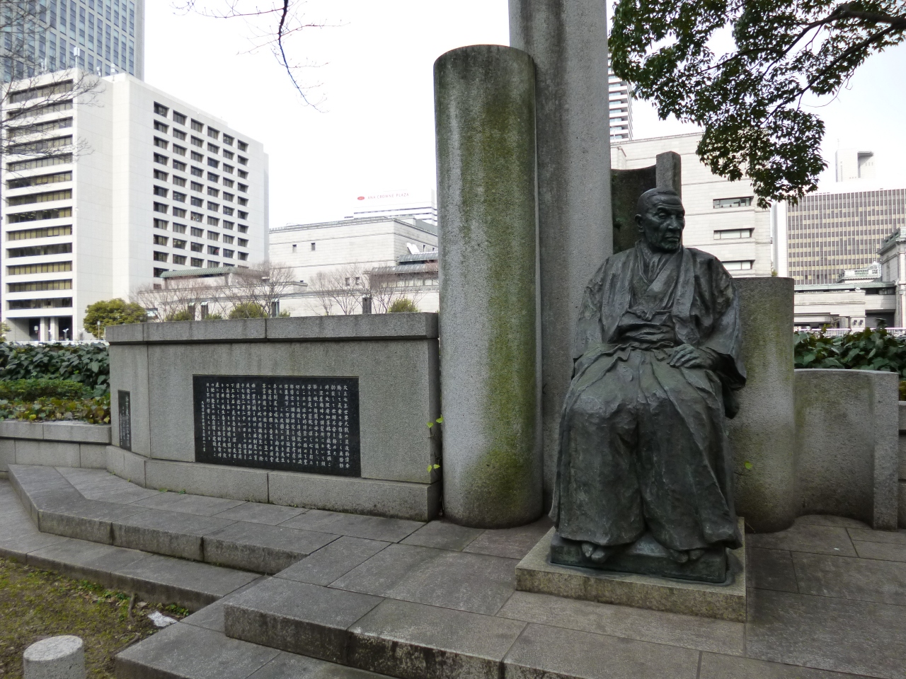 中之島や淀屋橋界隈は、大阪でも屈指の歴史地区だけあり、石碑や史跡の類がたくさんあります。土佐堀通り沿い、土佐堀川を背景に、林市蔵の座像があります。