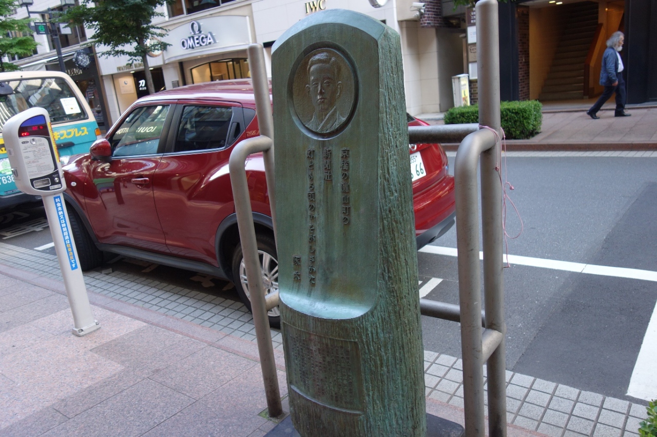 銀座の並木通り沿いに石川啄木の歌碑を歩道に見つけました。当時啄木が勤めていた朝日新聞社が有った場所だそうで、彼が当時忙しく働いていた様子を表現した歌を歌碑に見て人間味を感じました。青銅色の立派な碑でした。