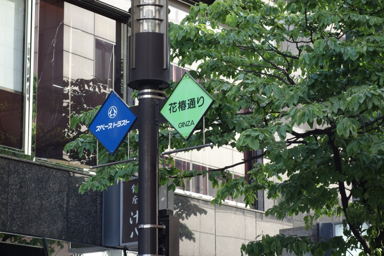 銀座の中央通りから資生堂ビルの角を曲がるとそこが花椿通りです。数か所椿が植えられていて表通りの喧騒から見ると落ち着いた雰囲気で歩きやすい通りでした。各種物販店のほかカフェなどの飲食店も並んでいました。