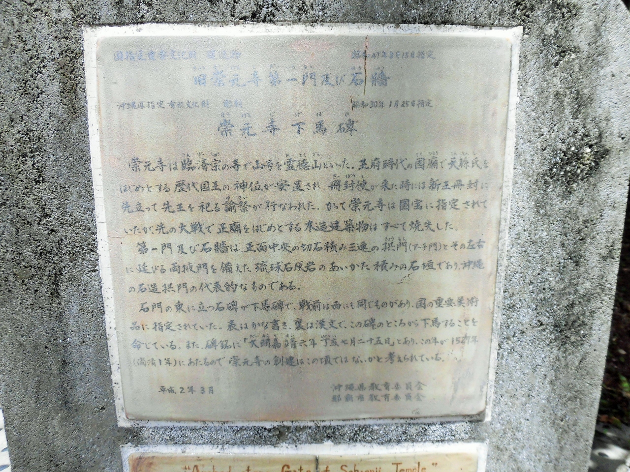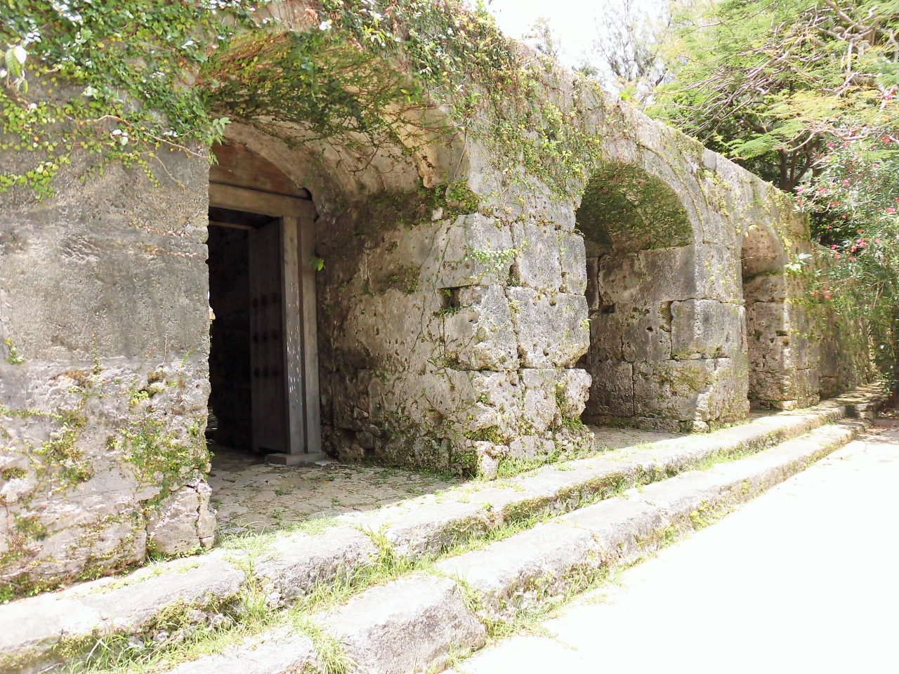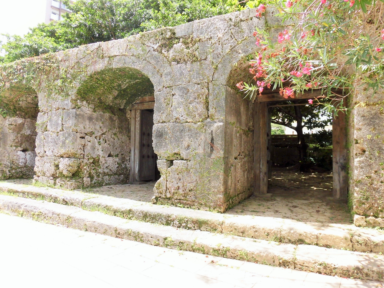 牧志駅から約400mなので歩いていけます。国の重要文化財にもなっているこの石門は、琉球石灰岩でできた三連アーチ型の門です。石門の形も美しくて見学の価値はありますが、石門の厚みにも驚きます。内部にあった崇元寺が戦争で焼けても、この石門なら残っても当然という感じでした。
