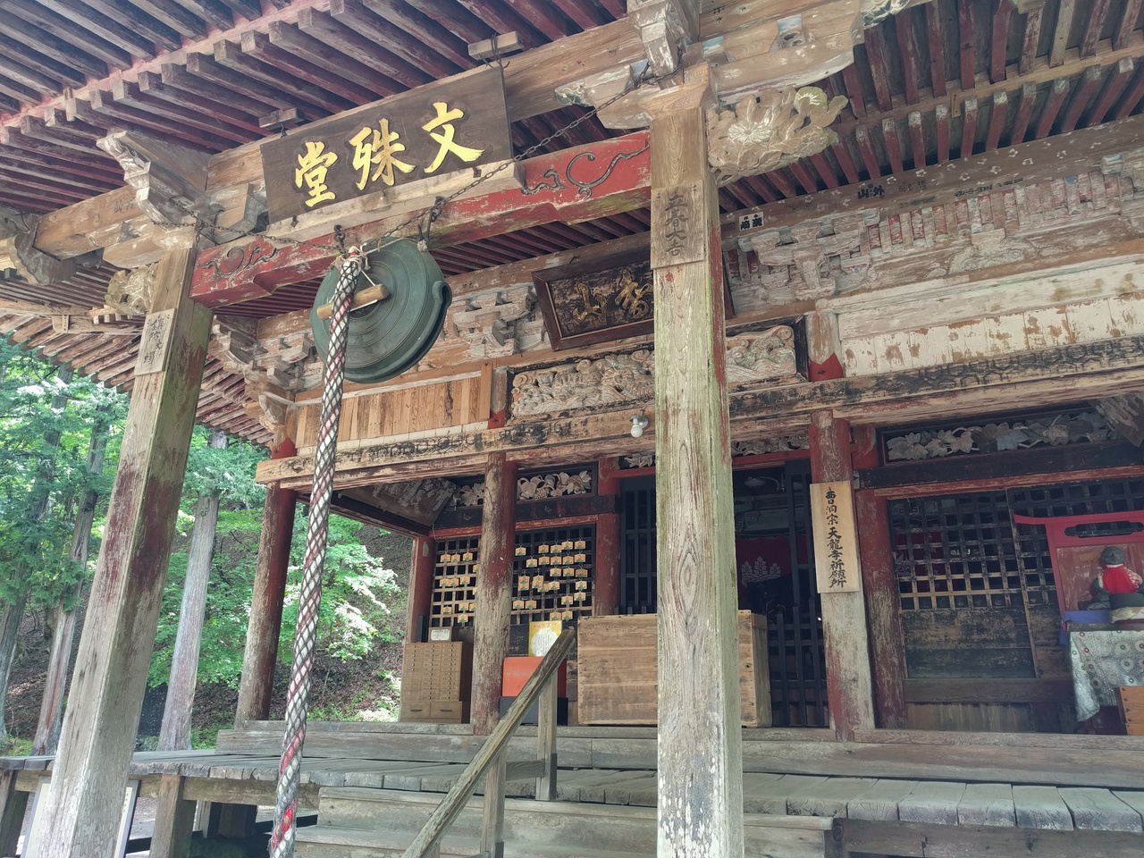 雰囲気のある橋を渡り、階段を登っていくと文殊堂がありました。