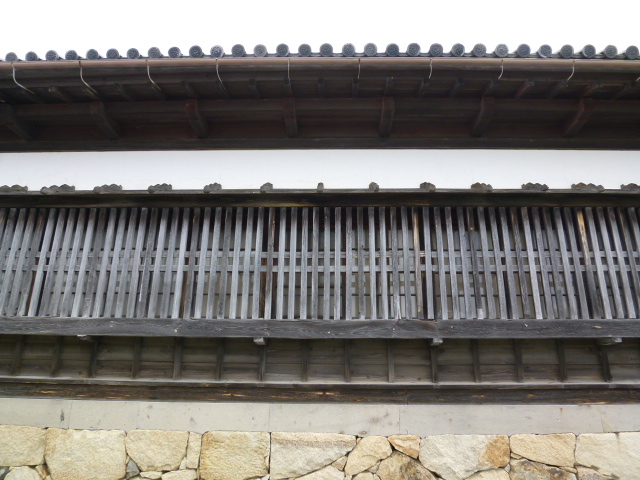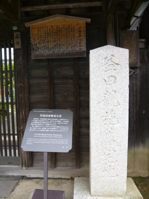 今回は「維新のふるさと」とも言われている憧れの城下町を散策する旅行です。萩開府400年記念して復元された巨大な北の総門(高麗門)の北側に「旧益田家物見矢倉(益田右衛門介親施旧宅跡)」があります。ここは萩藩の重臣益田家の建屋です。木戸脇に「益田親施旧宅地」と刻まれた碑があります。高い石垣の上に造られた武器など入れられた物見矢倉は木造建て平屋の立派な矢倉。敵の侵入を見張り防ぐ役割があったものでしょう。