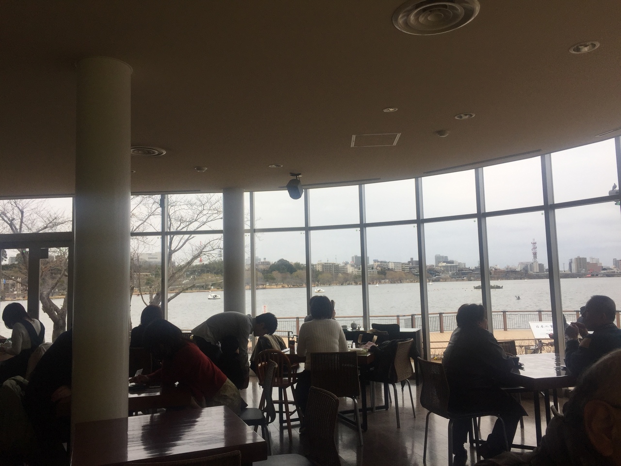 千波湖を見える お洒落なカフェっぽいが 何ともザンネンなカフェで 水戸らしい?のかと思った。