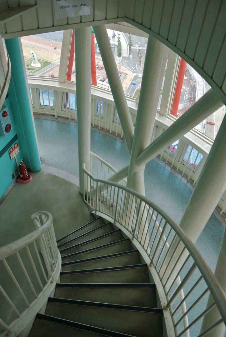 神戸ポートタワーを遠くから眺めたことはありましたが、内部に入るのは初めてです。料金は700円です。HPに100円の割引券がありますので、利用されることをお勧めいたします。EVで5F展望台からの眺望も微妙な感じです。50年前なら高いタワーだったかもしれません。4,3Fは低くなるので眺望はさらに・・・