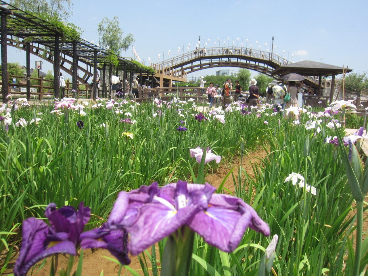 潮来駅からすぐそばですが、電車の本数は日中は2時間に1本くらいしかありません。しかもSuica等のカードが使えず鹿島線自体は不便です。5月下旬から6月下旬にかけては「水郷潮来あやめまつり」が開催されていて、期間中には本物の花嫁さんによる「嫁入り舟」のイベントが行われている日もあります。園内には約500種1000万株の色とりどりのあやめがきれいに咲いていて、無料で楽しむことができました。