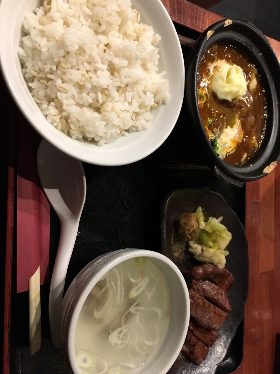 品川から出て南口出て、飲み屋がずらっと並んでいます。夜22時以降飲んでいる客さんが結構いますけど、定食まだ提供しています。牛タン焼きとタンシチューセット、食感が良くてコクがあり、シチューも柔らかくて別風味あり、美味しいです。