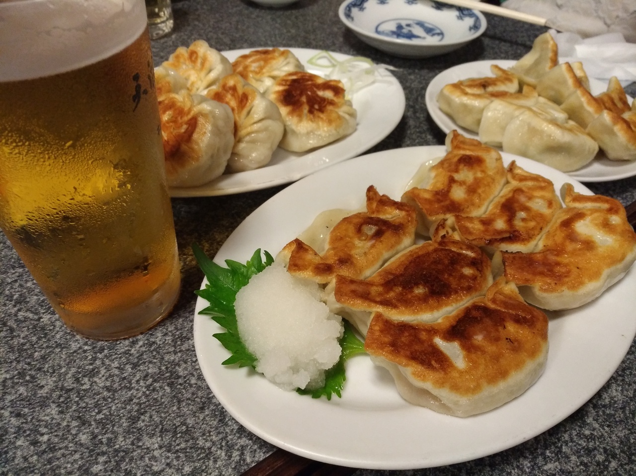 木曜日の夜に行きましたが、たくさんお客さんで賑わってました。黒豚餃子、パリパリ餃子、しそ餃子、海老餃子など色々な種類を食べましたが、しそ餃子が好評でした。海老もぷりぷりしてて個人的にはタイプな味でした。パクチーとキクラゲのサラダもあっさりしてて、とても美味しかったです。