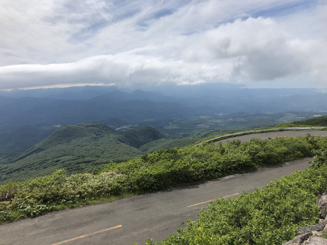 鶴の舞橋を見た後、天気も回復基調だったので、津軽岩木スカイラインに向かいました。途中は、りんご園に囲まれて いい眺めでした。岩木山の上にかかった雲もなくなり、沿道のピンクのタニウツギが、見頃でキレイでした。終点8合目からは、白神岳や日本海も見える 素晴らしい眺めでした。