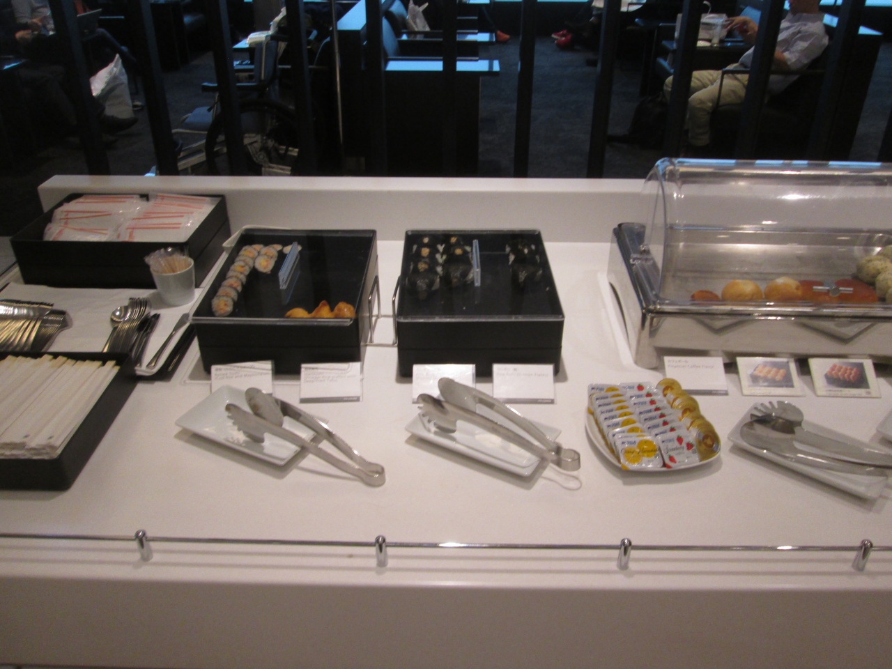 ラウンジ内の食事メニューにあるおにぎりは具を定期的に変更してくれます。梅・鮭の日と牛しぐれ・野沢菜の日の2パターンになっているようです。また、出汁の効いた温かい味噌汁もつねに用意されており、朝早い時間帯のときは朝食のように利用できました。