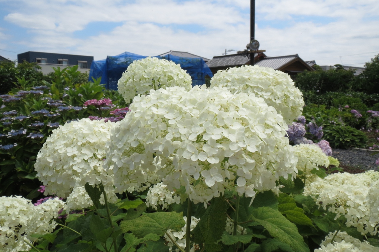 あじさいで有名なお寺のようです、あじさい祭ののぼりと案内看板を見つけて初めて行きました。この日は、地元の方々が、清掃や庭の手入れをしていて、地元に守られている様子がわかりました。住宅地にあり、付近の道も狭く、非常に分かりづらい場所にあります。