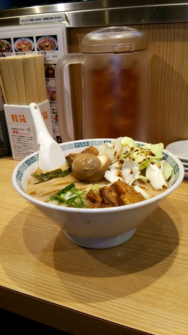 6月の休日、池袋駅周辺を一人で散策しました。お昼前、11時からラーメン屋さんが一斉にオープンします。西一番街の角にラーメンが集中した一角があります。天下一品と迷いましたがこっちにしました。ターローメンの大盛を頼みました。美味しかったです。