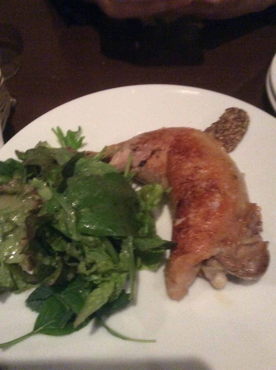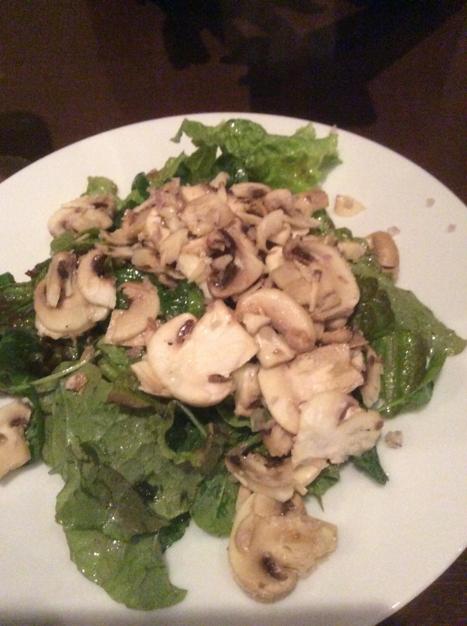夜に行きましたのでマッシュルームのサラダ、パン、カルボナーラ、鳥もも肉のコンフィを注文しましたがどれも美味しくって大当たり。