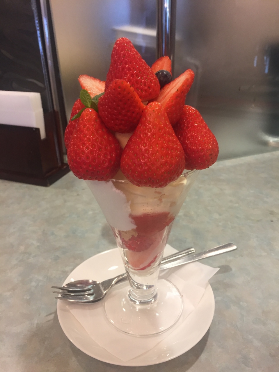 2月下旬は苺パフェが旬で これをオーダーしている人が多かった。