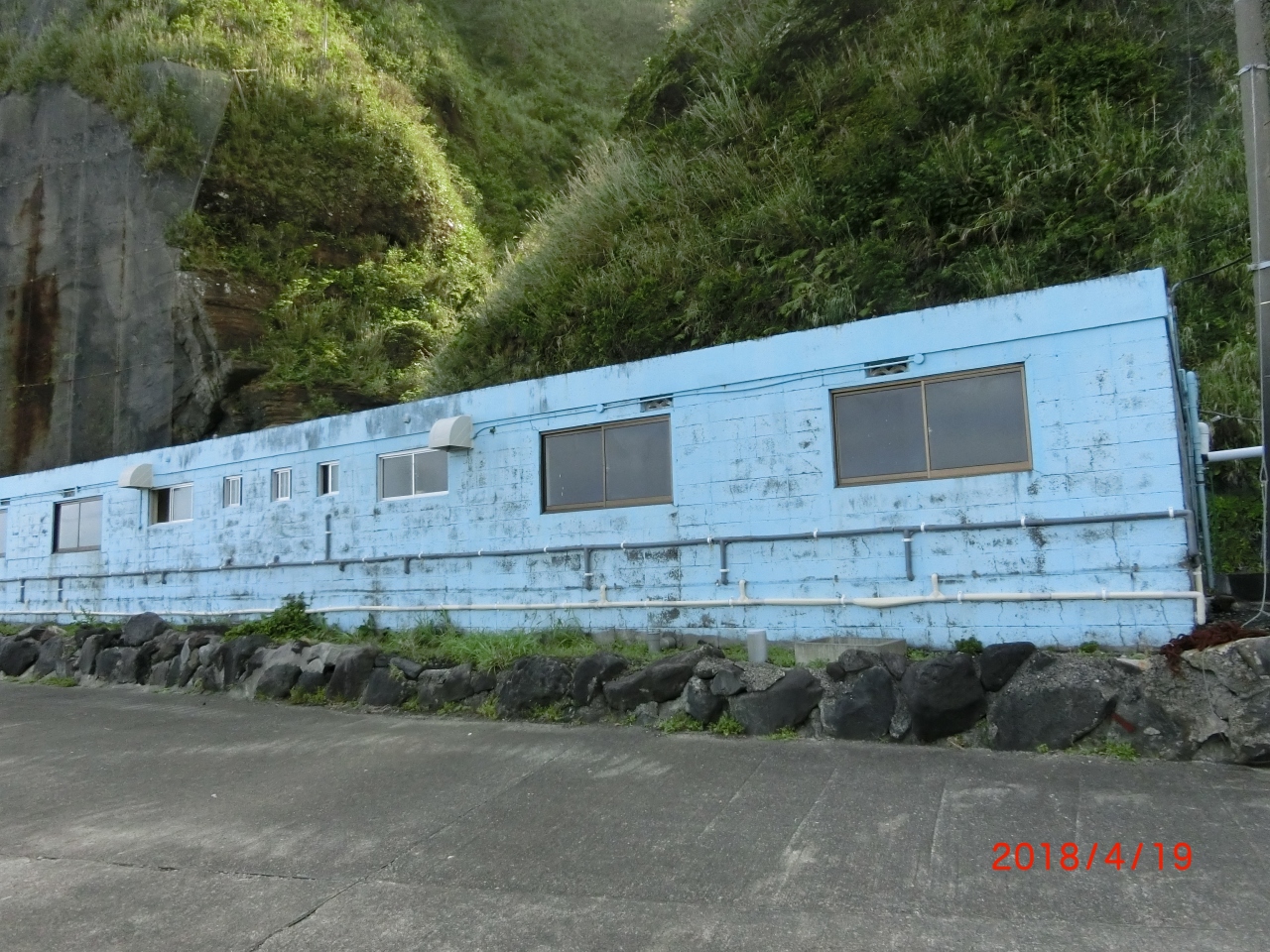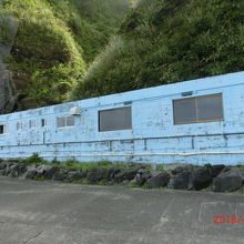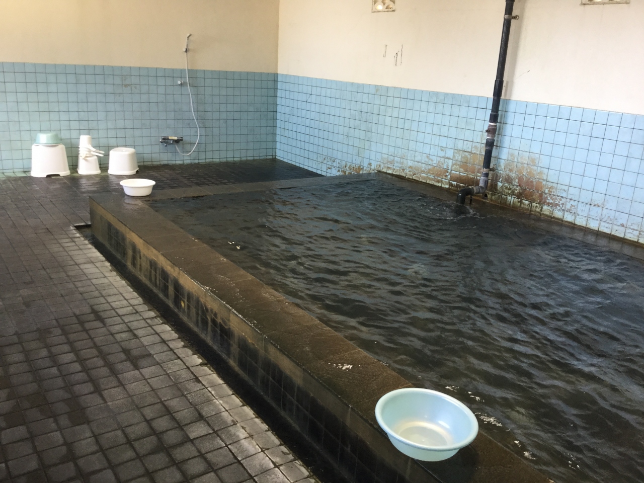 この水色の建物の前に回ってこれが温泉だとわかった。