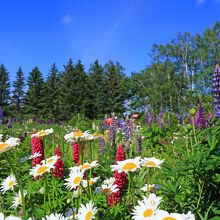 天気も上々で、ガーデンには手入れをされた様々なルピナスが咲いており、最高にきれいでした。こちらは、季節によりいろいろな花を栽培しており、バラやチューリップもお勧めということです。周囲には十勝の雄大な畑が広がっており、ぜひとも訪れてほしい場所です。