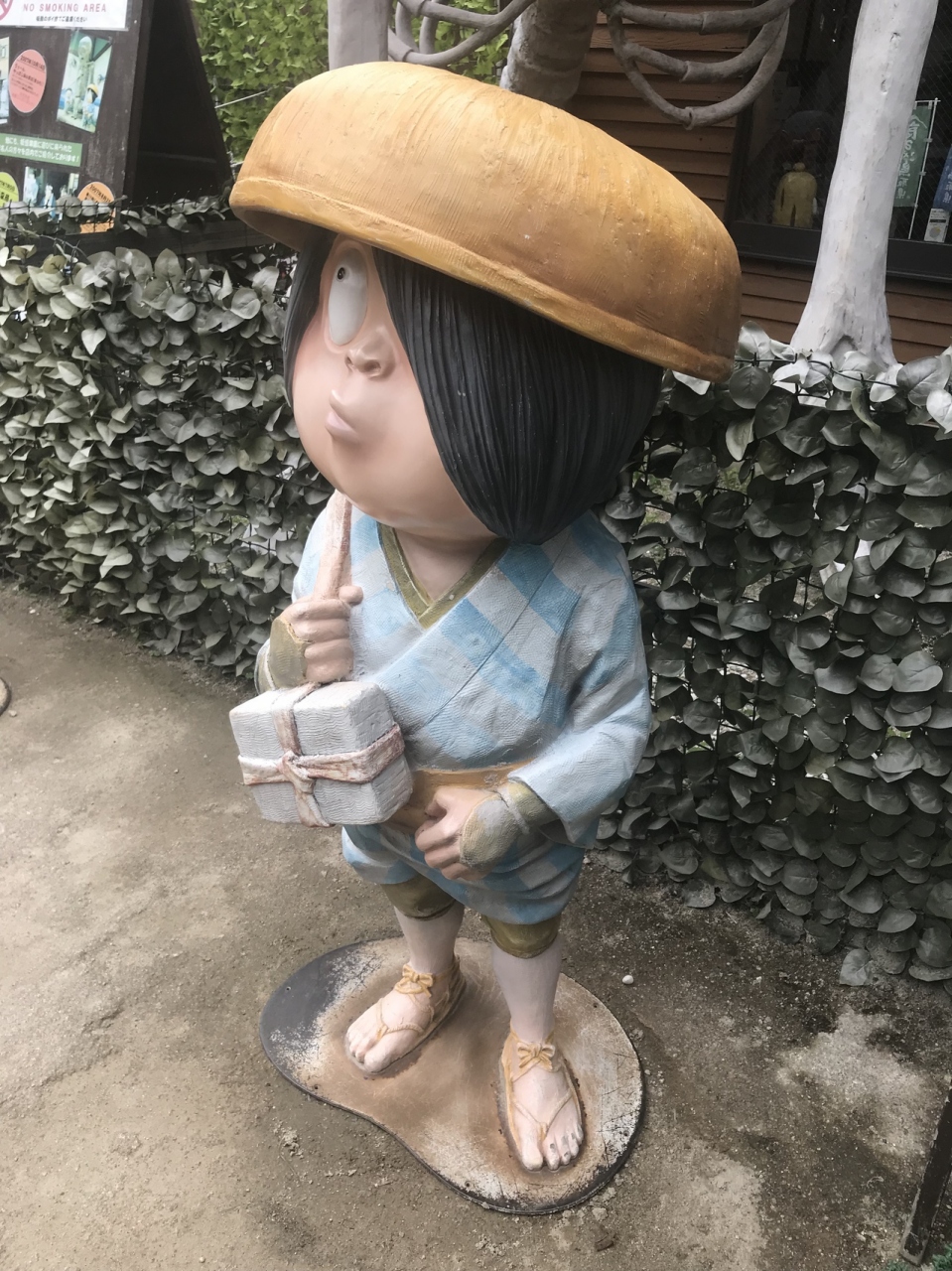 JR境港駅から水木しげるロードが続きます。境港は鬼太郎一色の町ですね。1993年7月に誕生した水木しげるロードには、さまざまな妖怪のブロンズ像やお土産やさんがあり、妖怪クッキーや目玉のおやじのアメなどが買えました。