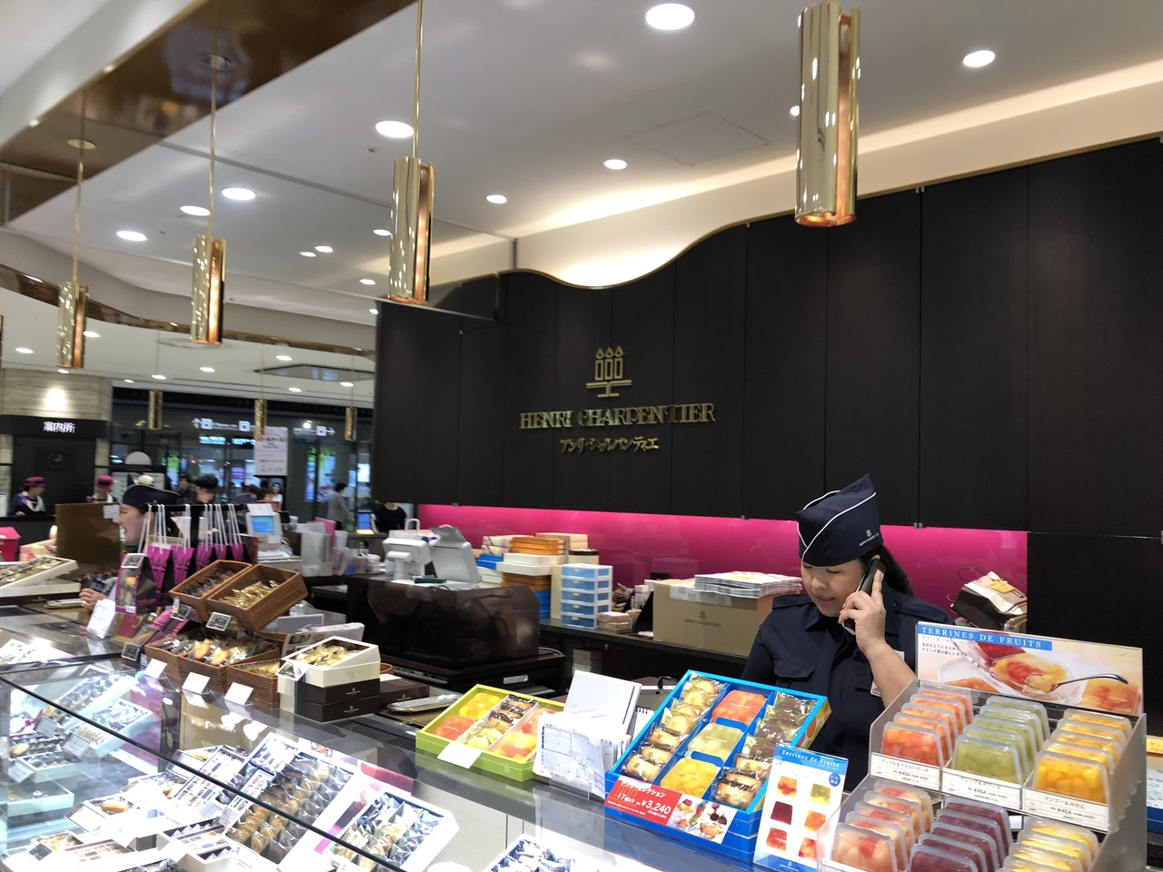 あべのハルカスの近鉄本店に入っているアンリ・シャルパンティエ。関東のデパ地下でもおなじみのお店なのですが、なんとなく関西の店舗の方が豪華でキラキラして見えます。贈答品などの展示の見せ方もこっちの方が豪華な感じ。