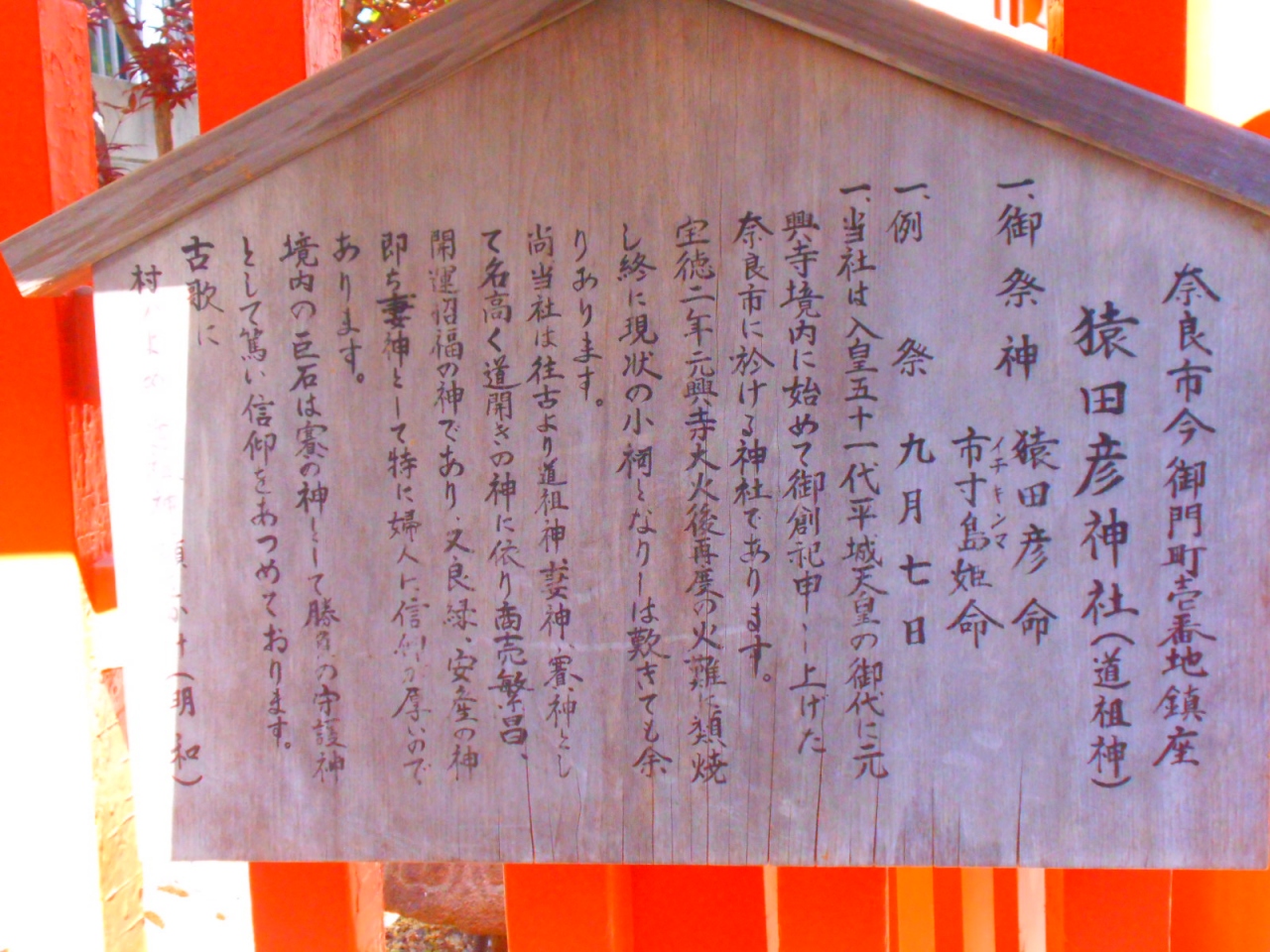 鳥居のところに、猿田彦神社(道祖神)の説明が