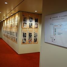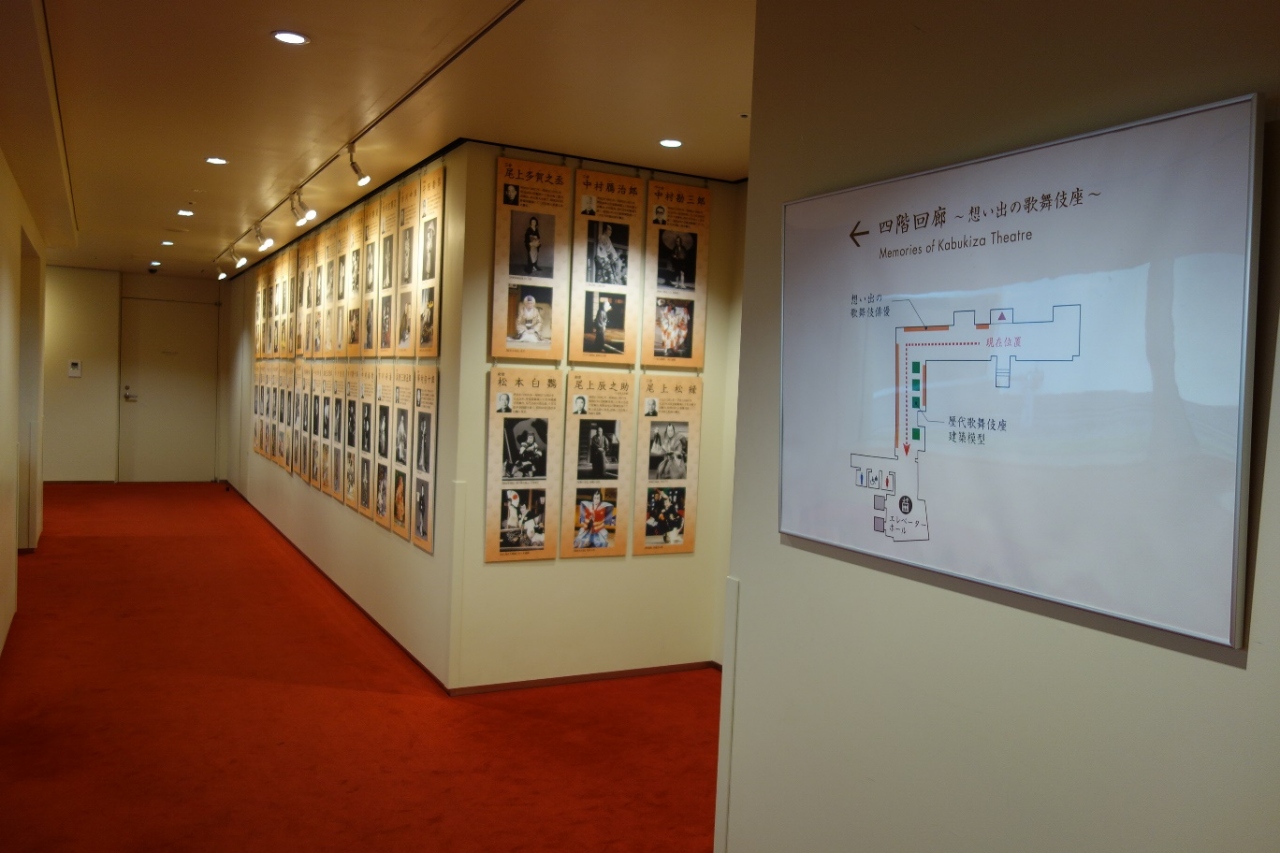 歌舞伎座の5階ギャラリーや屋上庭園など訪れた後、五右衛門階段を使って4階に降りてきました。建物内に入るとそこはギャラリーになっていて歴代歌舞伎座の建物模型や役者さんたちの肖像画飾られていました。知っているお名前も有り楽しく拝見させていただきました。