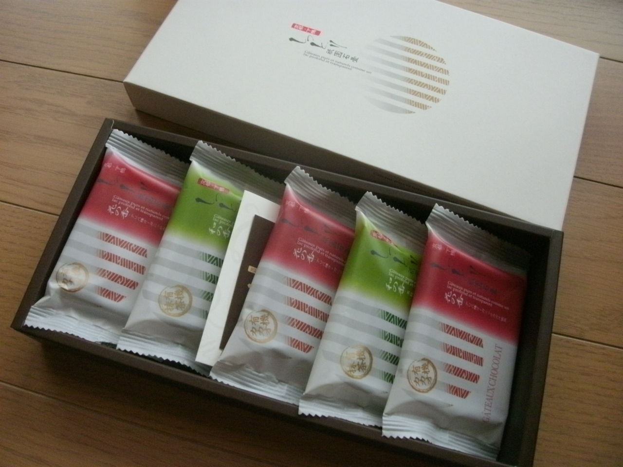 この日は、“祇園石畳”という御菓子を買い求めました(5個入り1080円)。抹茶やチョコレートに白小豆を使ったお菓子で生地のしっとり感と口の中で溶ける食感がたまりません。上品なお菓子なのでちよっとしたお使い物としても良いし、“祇園石畳”という名前も京都らしいお菓子なので、京都土産としてもオオススメです。