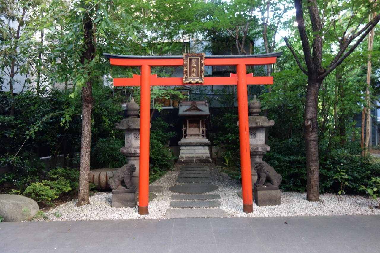 銀座一丁目の三吉橋近くにある神社です。ビルの谷間に位置する大都会らしい神社ですが、境内には緑が多く都会のオアシスの印象です。神社はきれいに手入れされていて赤い鳥居が印象的、更に狛犬や石燈籠なども置かれていました。