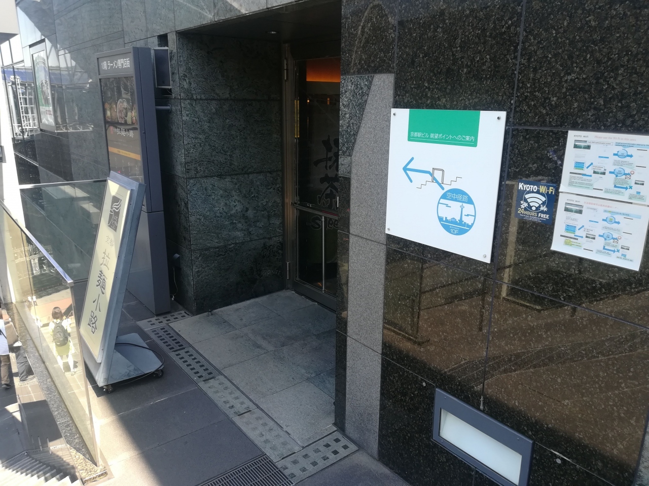 京都駅の大階段を登っていったところにありました。大階段の南側に小さな入り口がありますが、中は結構な広さです。日本全国の有名ラーメン店が入っていて京都限定ではありません。なお、適時、テナントラーメン店が入れ替わっているそうで、飽きないかと思います。